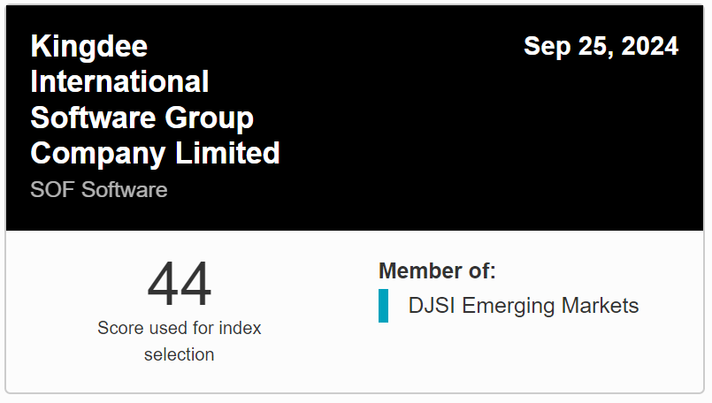 Recently, Kingdee International Software Group Co., Ltd. (0268.HK, hereinafter referred to as “Kingdee”) has been included in the Dow Jones Sustainability Index for Emerging Markets (DJSI Emerging Markets), becoming the only Chinese software enterprise to achieve this distinction! This achievement marks Kingdee’s outstanding performance and global recognition in the field of corporate sustainability.