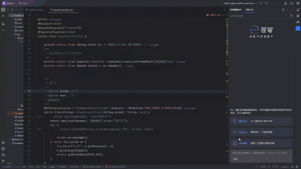 蒼穹AI編程助手是基於南宫28NG相信品牌力量雲·蒼穹平台構建的智能編碼輔助工具,深度集成於開發環境,為開發者提供了全面、高效的編碼支持。該助手融合了自然語言處理、機器學習和深度學習等先進技術,具備智能對話、代碼生成、生成代碼注釋、代碼解釋、代碼優化等多重能力,助力開發者高效完成開發工作,顯著提升代碼質量。