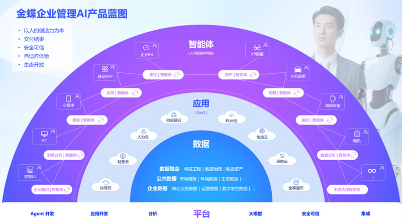 ستتحول كينغدي بالكامل إلى “شركة ذكاء اصطناعي لإدارة المؤسسات”. نؤمن بأن كل مؤسسة ستصبح شركة ذكية في المستقبل، ومساعدتها على تحقيق التحول الرقمي هي مهمة كينغدي المتمثلة في “تمكين المؤسسات وتحقيق نتائج استثنائية” في عصر الذكاء الاصطناعي. صرّح تشانغ يونغ، رئيس مجموعة كينغدي، بأن كينغدي ستعتمد على تقنية الذكاء الاصطناعي في جوهرها، وستدمج نظريات وممارسات إدارة المؤسسات، وستبني جيلًا جديدًا من منصات إدارة المؤسسات لسيناريوهات الإدارة الأساسية مثل استراتيجية المؤسسة، والعمليات، والتنظيم، والموارد البشرية، والابتكار.